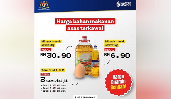 Harga telur ayam gred A,B,C turun 3 sen sebiji,mulai hari ini