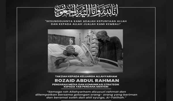 “Menerima perkhabaran duka mengenai pemergian sahabat saya,Rozaid Abdul Rahman yang telah disahkan meninggal dunia di kediaman keluarganya petang tadi.