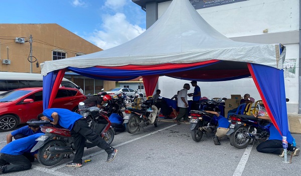 SIMPANG EMPAT,20 Ogos-Sebanyak 200 pemilik motosikal tidak melepaskan peluang bagi mendapatkan perkhidmatan menukar minyak hitam motosikal secara percuma yang disediakan GIATMARA Arau.