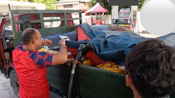 Seorang lelaki ditahan ketika leka mengisi diesel ke dalam tong. - FOTO RTM