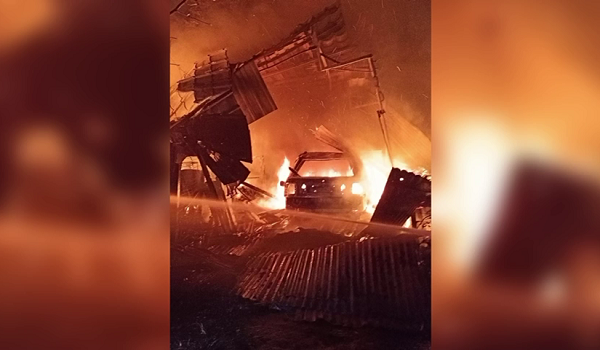 Sebuah kereta sedan turut hangus,sementara lima kenderaan lain mengalami kebakaran sebanyak 20 peratus.
