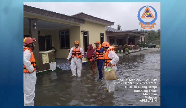 MELAKA,6 Mac- Hujan lebat berterusan sejak 6.00 pagi tadi mengakibatkan beberapa kawasan di dua daerah di Melaka iaitu Melaka Tengah dan Jasin dinaiki air.