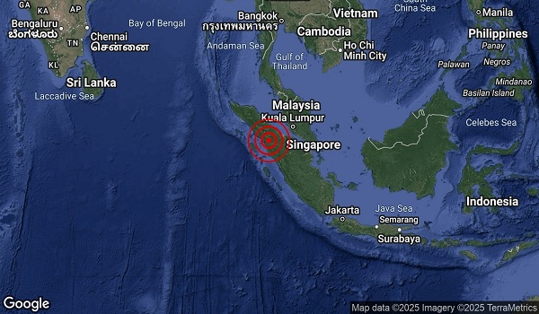 Menurut Jabatan Meteorologi Malaysia (METMalaysia),gegaran dirasai di Perlis,Kedah,Pulau Pinang,Perak,Selangor,Kuala Lumpur,Putrajaya,Negeri Sembilan,Melaka dan Johor.