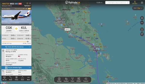 Terdahulu,laman web penjejakan penerbangan,FlightRadar24,melaporkan di Facebook bahawa MH720 telah menghantar isyarat kecemasan pada kod transponder 7700 di selatan Kuala Lumpur,menandakan keadaan kecemasan umum. - BERNAMA