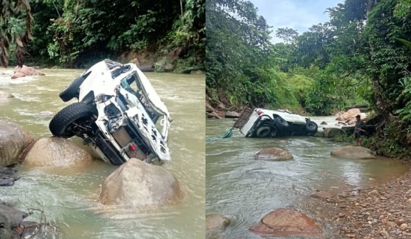 Dalam kejadian sekitar pukul 8 malam semalam,mangsa,Vallerie Mentie Dawellies,Dawellies Luing,46 tahun,dipercayai cuba menyeberangi sungai tersebut sebelum kenderaan jenis pacuan empat roda yang dinaiki mereka dihanyutkan arus deras.
