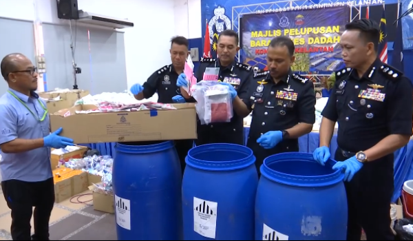 Menurut Ketua Polis Kelantan Datuk Mohd Yusoff Mamat,rampasan melibatkan pelbagai jenis dadah termasuk syabu,pil yaba,ganja,heroin,daun ketum dan air ketum.