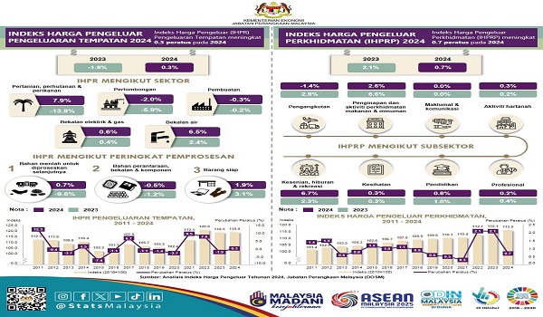 Indeks Harga Pengeluar Perkhidmatan (IHPRP) pula merekodkan peningkatan 0.7 peratus,berbanding 2.1 peratus pada 2023.