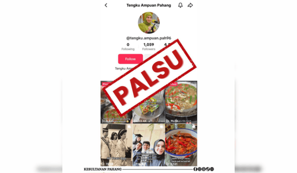 KUANTAN,24 Julai - Orang ramai diminta tidak terperdaya dengan kewujudan akaun TikTok palsu yang menggunakan nama Tengku Ampuan Pahang,Tunku Azizah Aminah Maimunah Iskandariah.