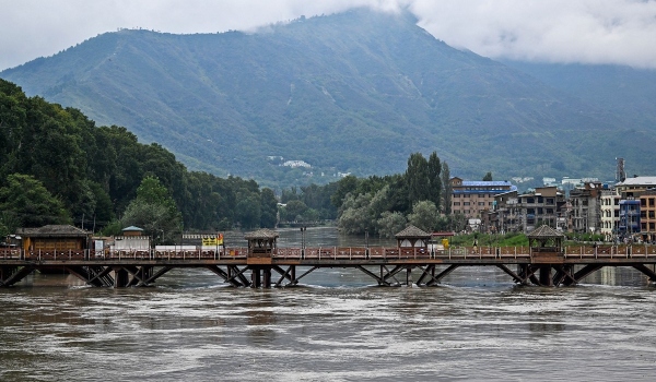 Jambatan pejalan kaki merentasi Sungai Jhelum di Srinagar kelihatan lengang selepas paras air meningkat akibat hujan lebat hari ini/Foto AFP