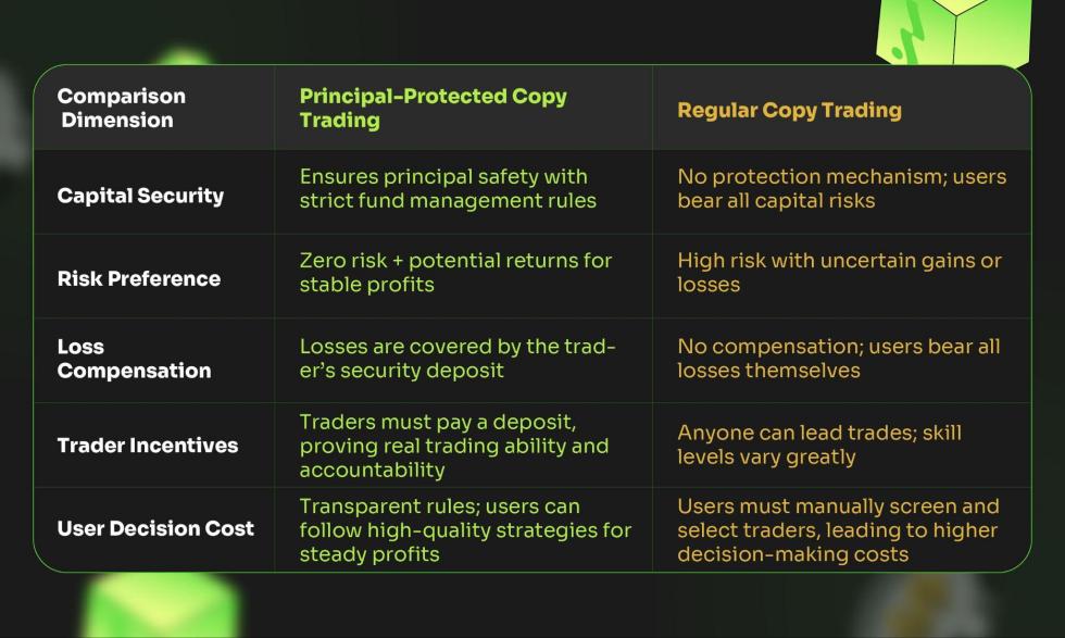 Mekanisme jaminan modal bukan sahaja memastikan pengguna dan trader pembawa memperoleh pulangan yang sewajarnya melalui strategi profesional, tetapi juga membolehkan pengguna biasa merasai pengalaman perdagangan yang telus dan berperaturan.
