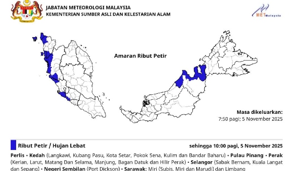 Amaran ribut petir di beberapa negeri